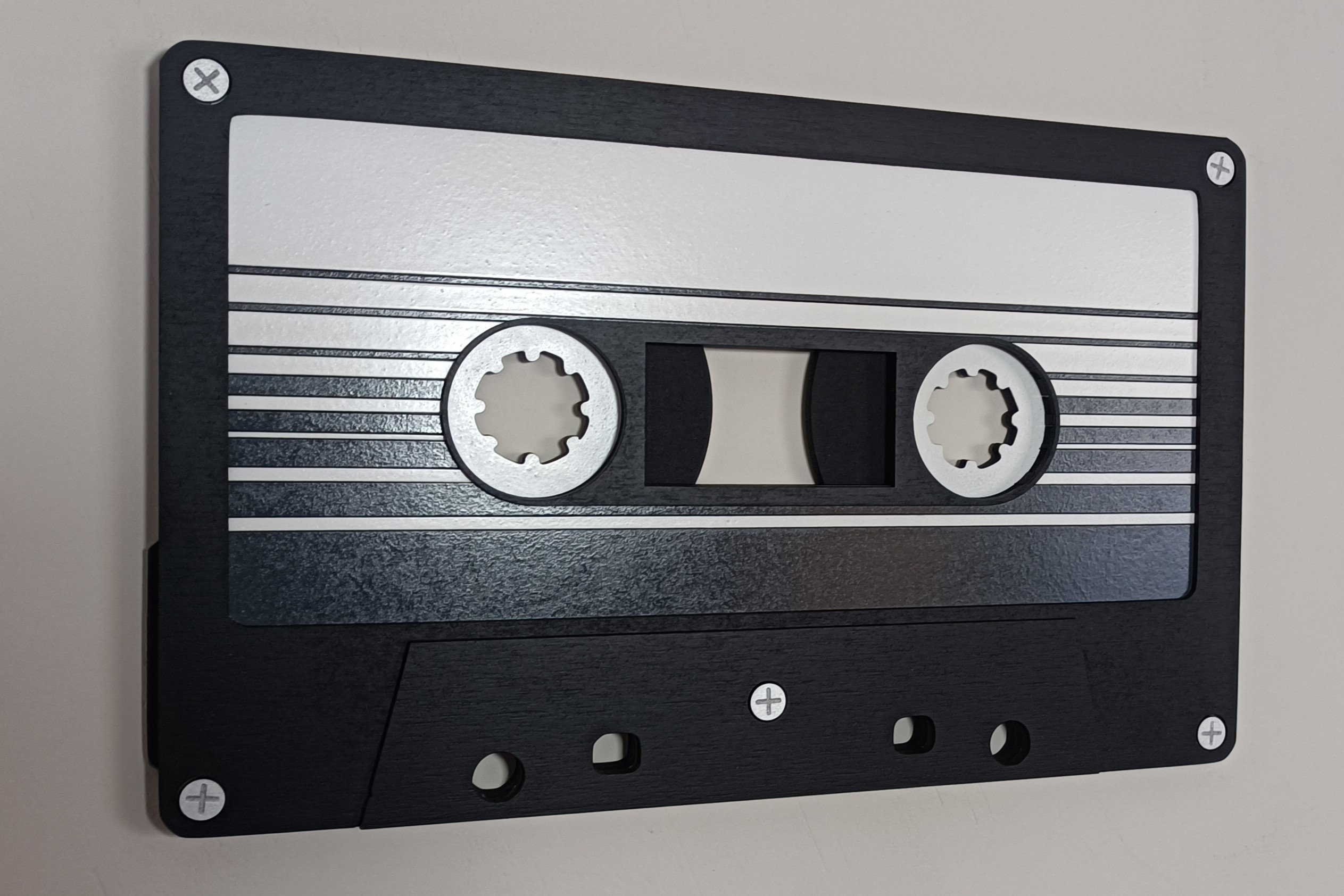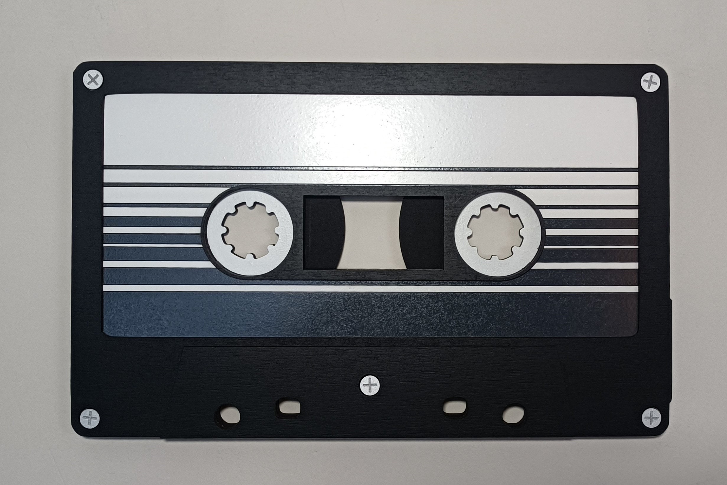 The 'tape' can also be personalised by the addition of whichever lettering that you require on the ‘label’, whether this be a persons name and mix tape or a favourite 80's artist & album the choice is yours. The lettering is added with adhesive vinyl on the two lines on the front of the tape.