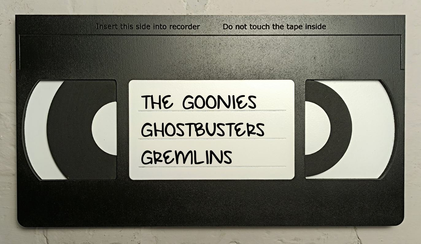 The 'tape' can also be personalised by the addition of whichever lettering that you require on the ‘label’, whether this be a persons name and or a favourite 80's movie the choice is yours. The lettering is added with adhesive vinyl on the lines on the front of the tape.
