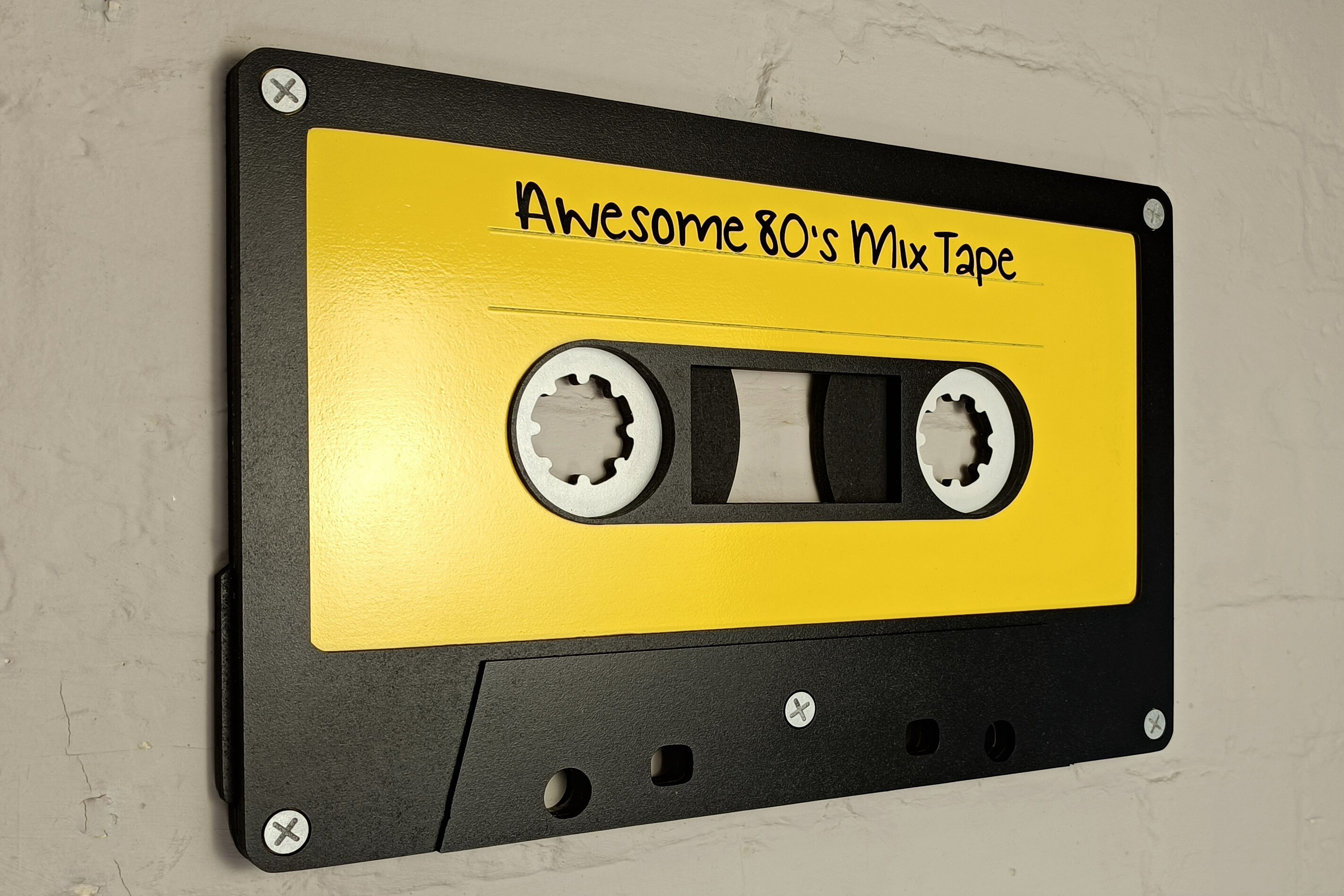 The 'tape' can also be personalised by the addition of whichever lettering that you require on the ‘label’, whether this be a persons name and mix tape or a favourite 80's artist & album the choice is yours. The lettering is added with adhesive vinyl on the two lines on the front of the tape.