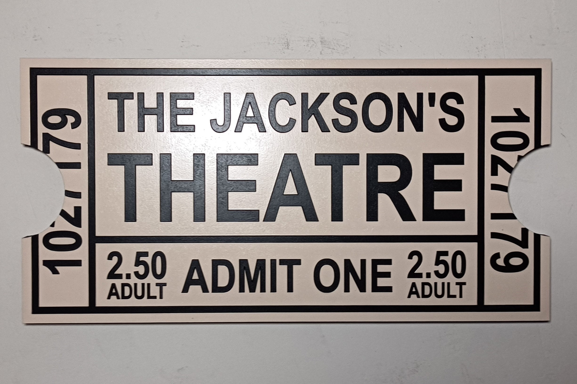 Add a personal, cinematic touch to your movie room with this custom ticket-style sign. Choose your colours, add your wording, and create a piece that’s truly unique to your home!