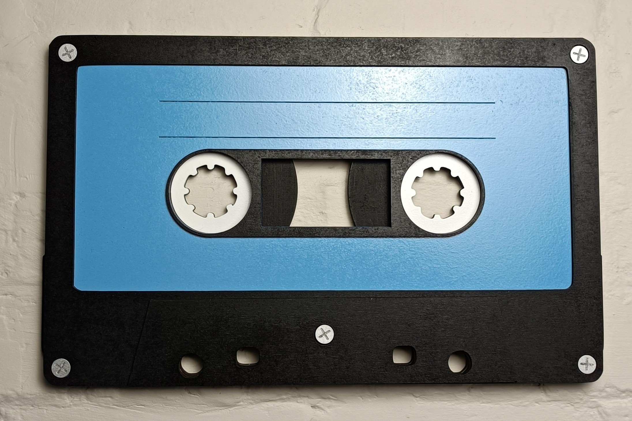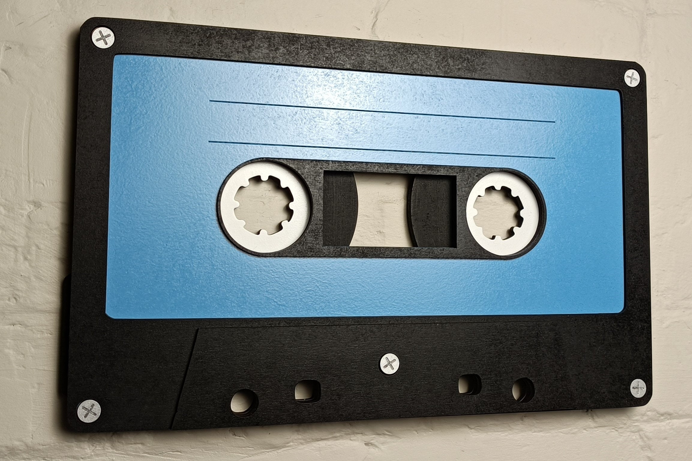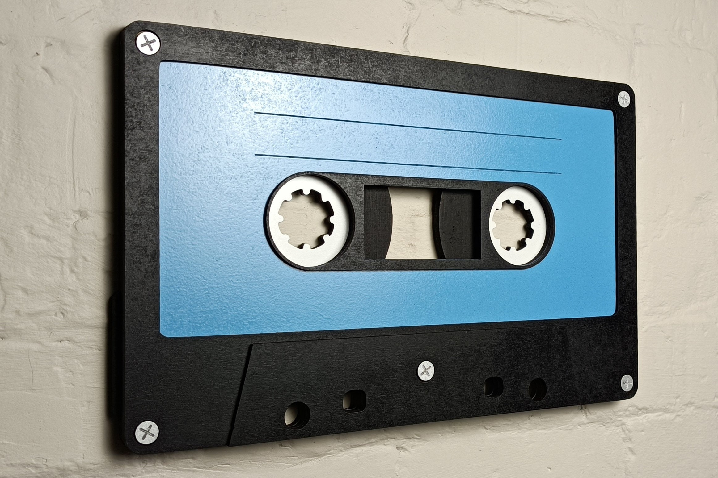 Handmade from layered MDF and finished with hand-painted details (even down to the screws!), this 3D wall art captures the charm of vintage mixtapes.