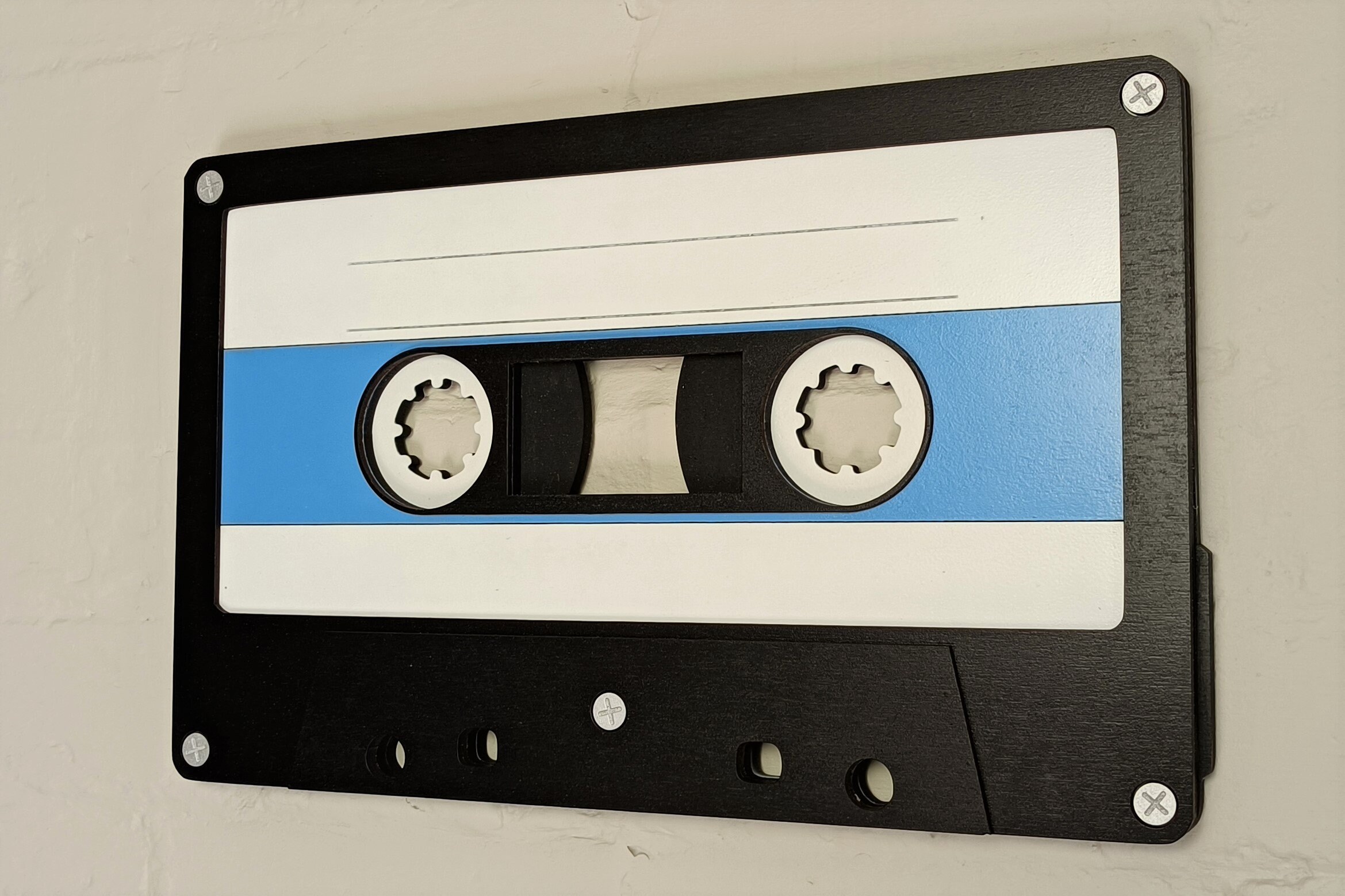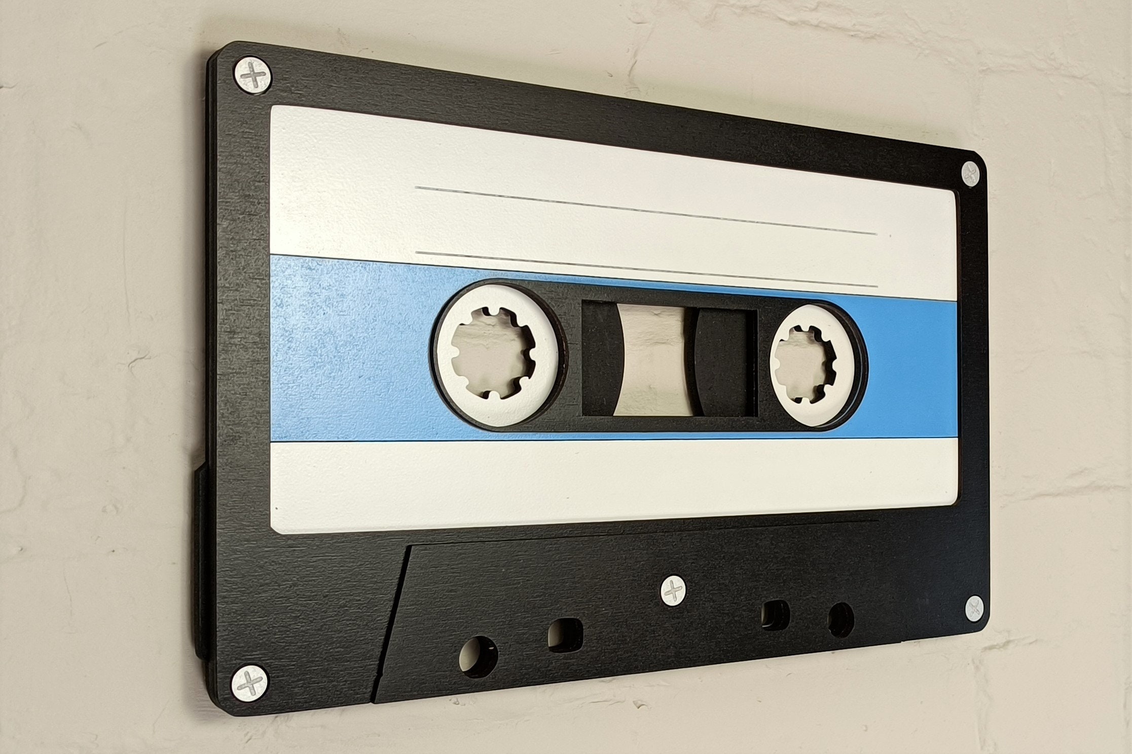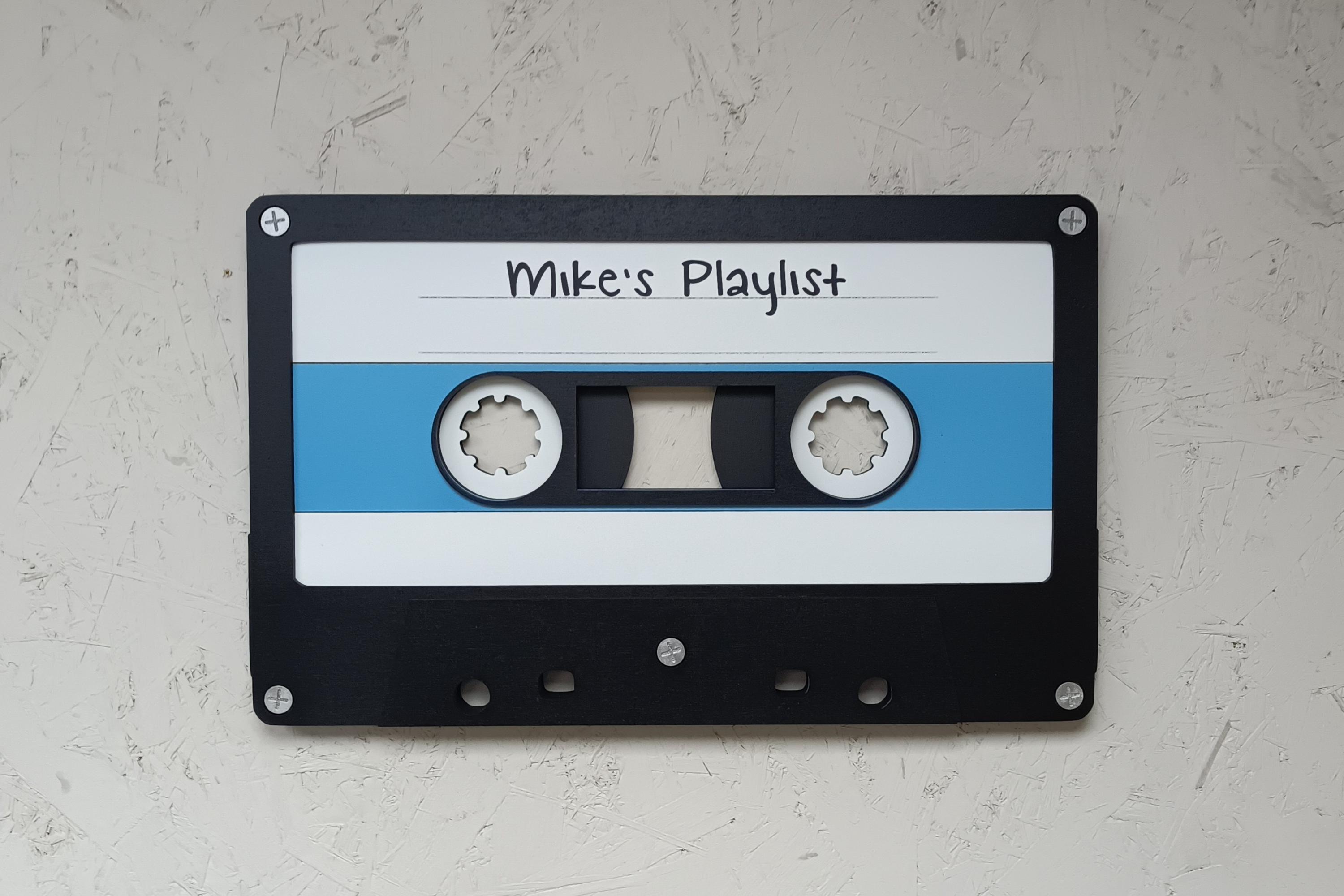 The 'tape' can also be personalised by the addition of whichever lettering that you require on the ‘label’, whether this be a persons name and mix tape or a favourite 80's artist & album the choice is yours. The lettering is added with adhesive vinyl on the two lines on the front of the tape.