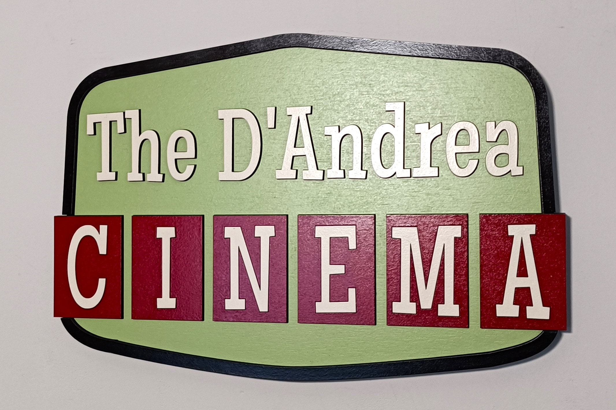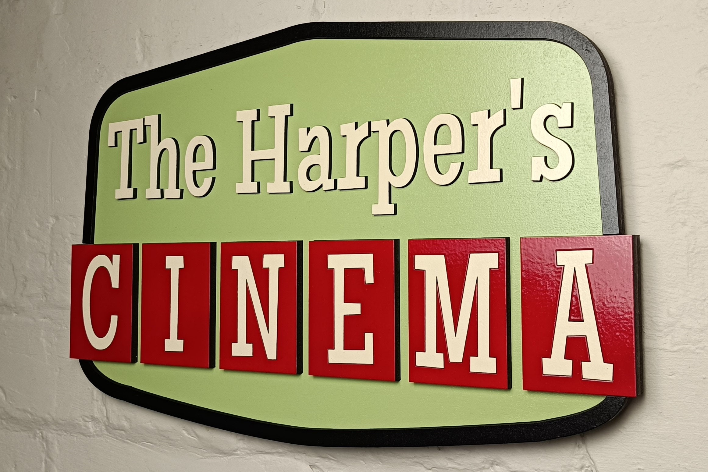 Made from layers of laser cut MDF to recreate the 3 dimensional look of vintage diner signs the top line can be personalised with your choice of name, whether that be a first name, family name or even something like Dad's Cinema the choice is up to you.