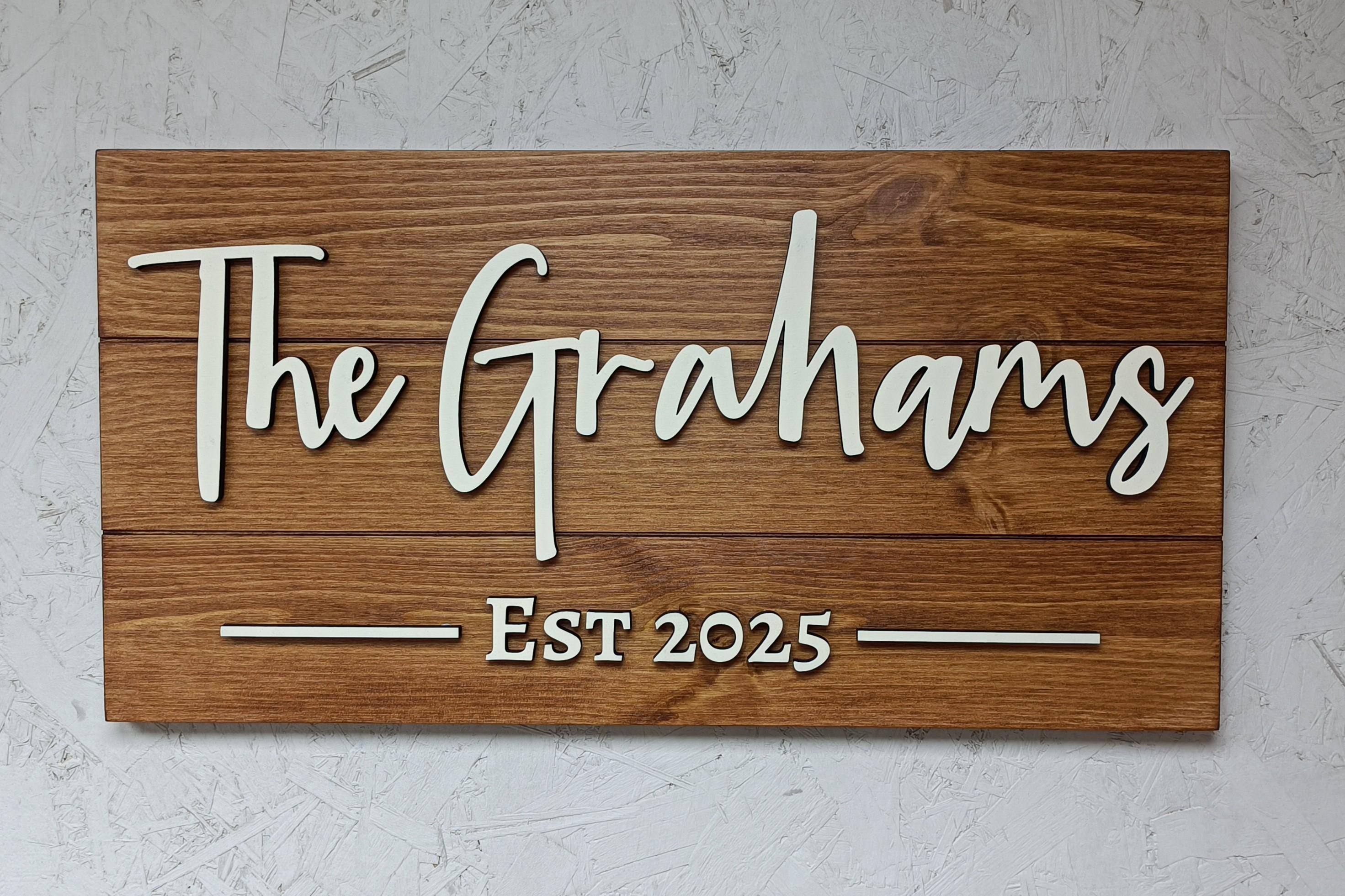 Design: Personalised with family name and optional established date or names (e.g., “The Thompsons | Est. 2022”)