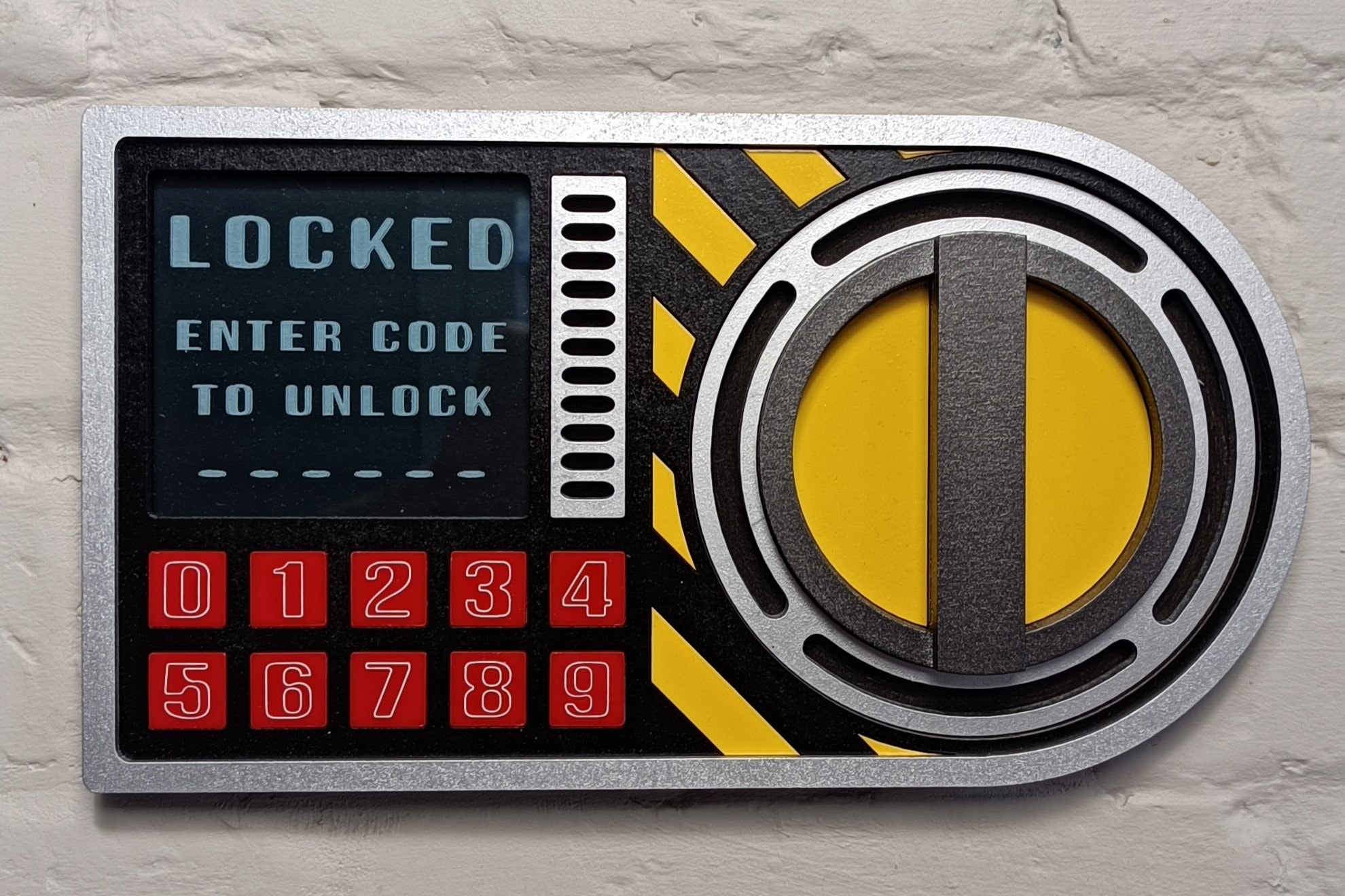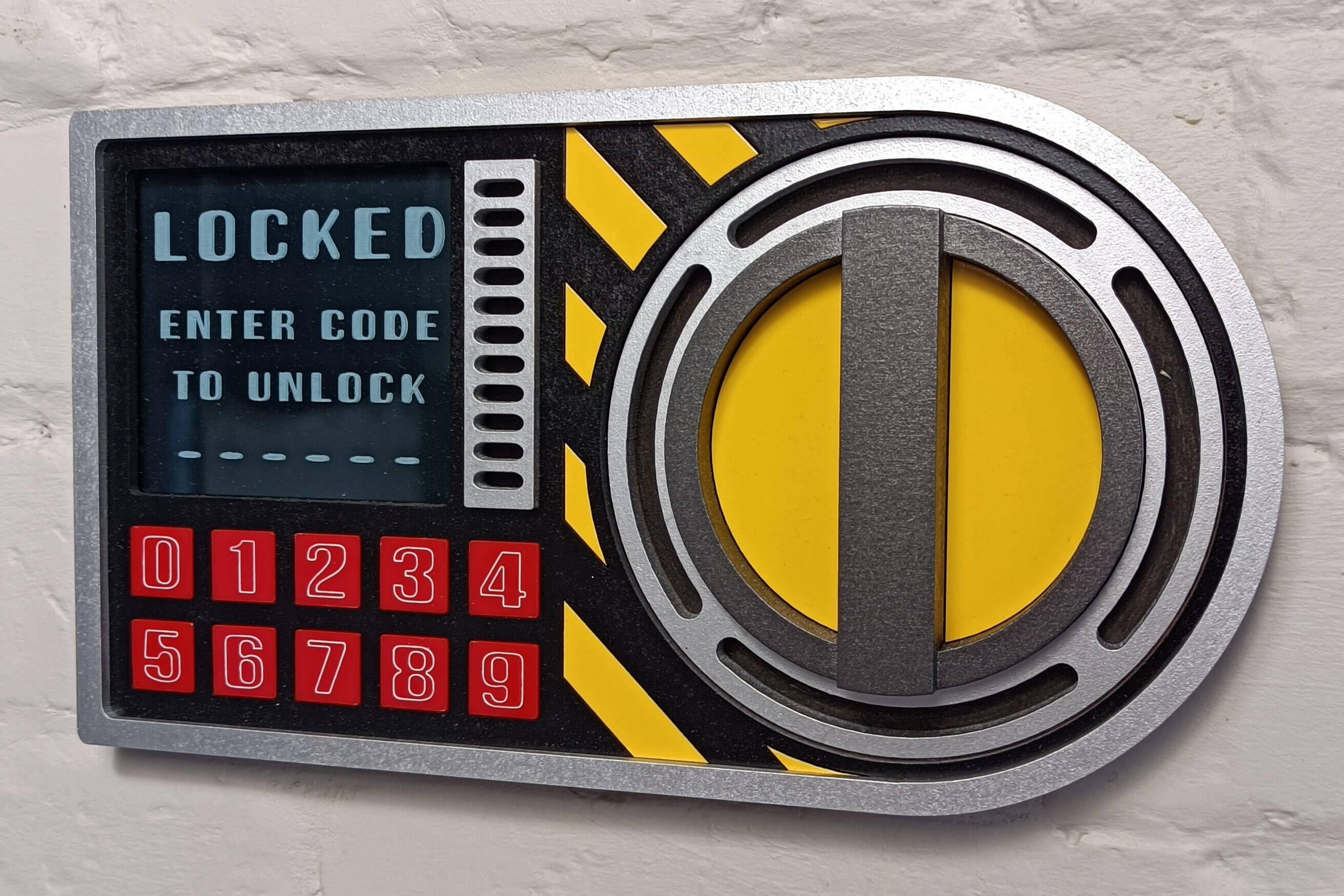 If you are looking for the perfect accessory or gift for a Sci-Fi fan then look no further. This unique Sci-Fi inspired 3D door lock Control Panel would be a perfect addition to any futuristic spaceship themed bedroom, games room, home cinema, man cave or she shed.