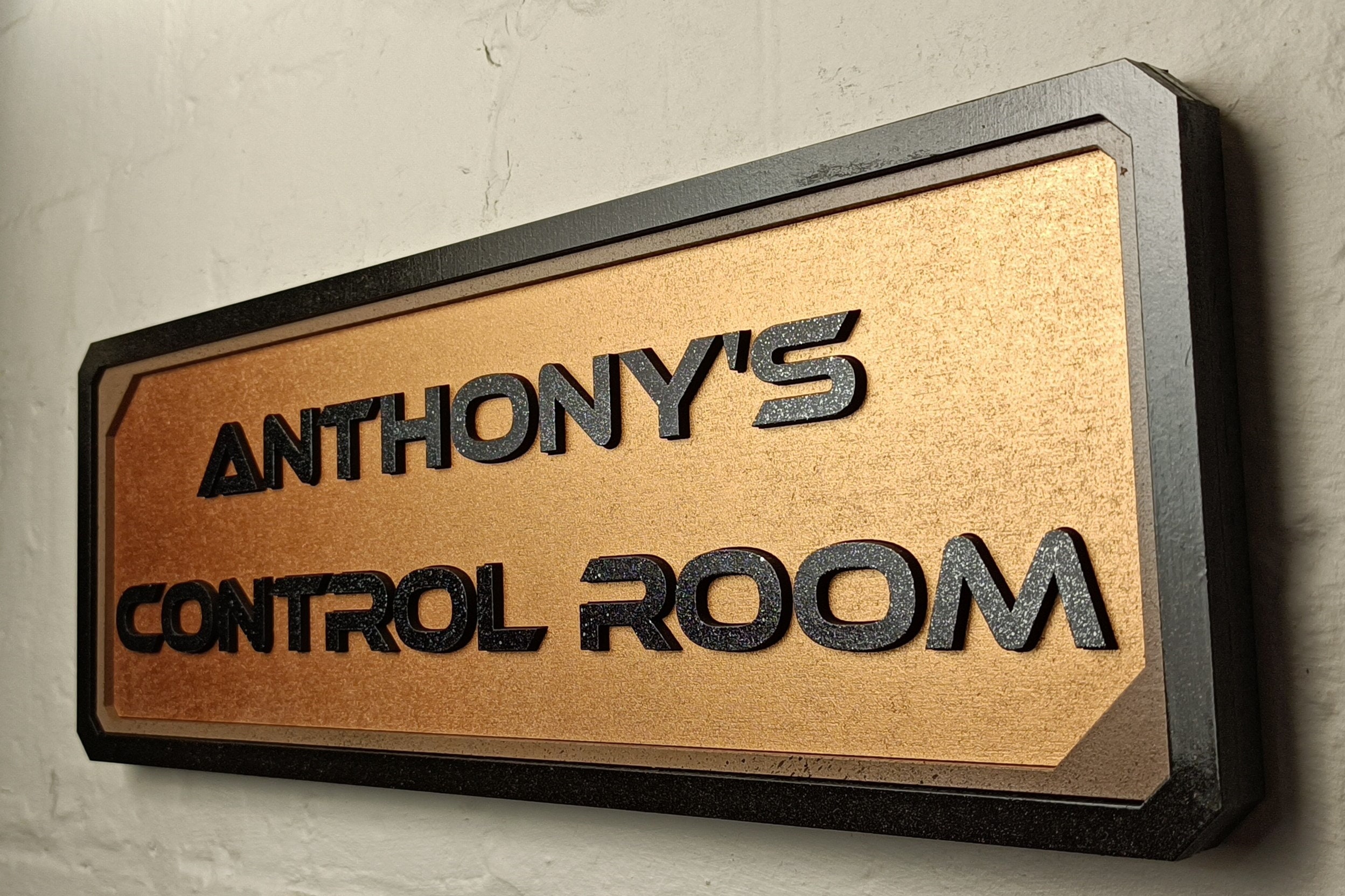 The text is in futuristic style font and you can decide on what text you require; Jason's Bedroom, Claire's Star Base, Andy's Man Cave, Anita's outpost or whatever else might take your fancy!