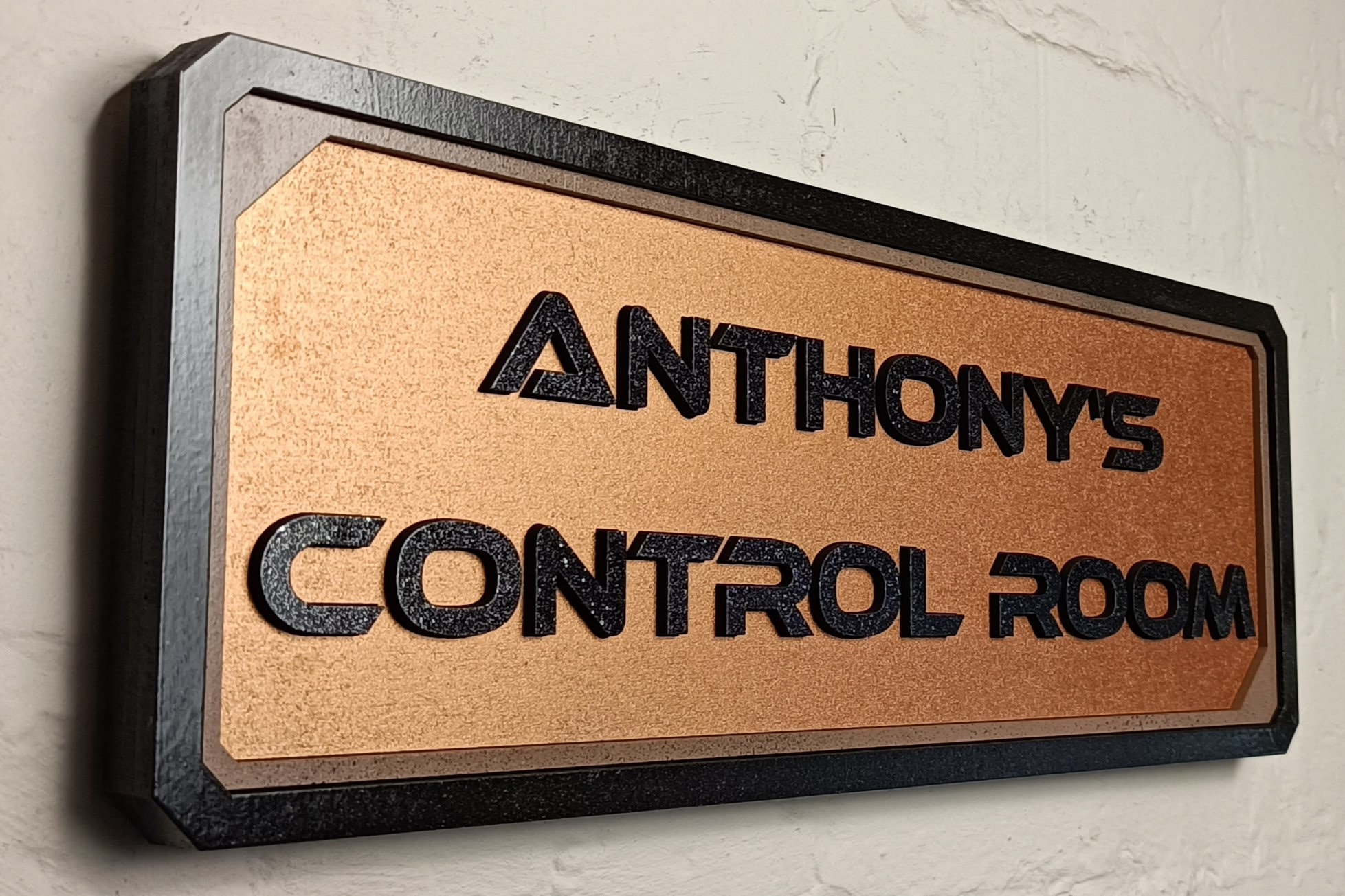 Taking inspiration from Sci-Fi movies the sign is made from different thickness's of MDF cleverly layered to give a 3D effect. What makes this unique is that it is sprayed with multiple metallic and satin colours to really give the authentic 'used future' look and feel.