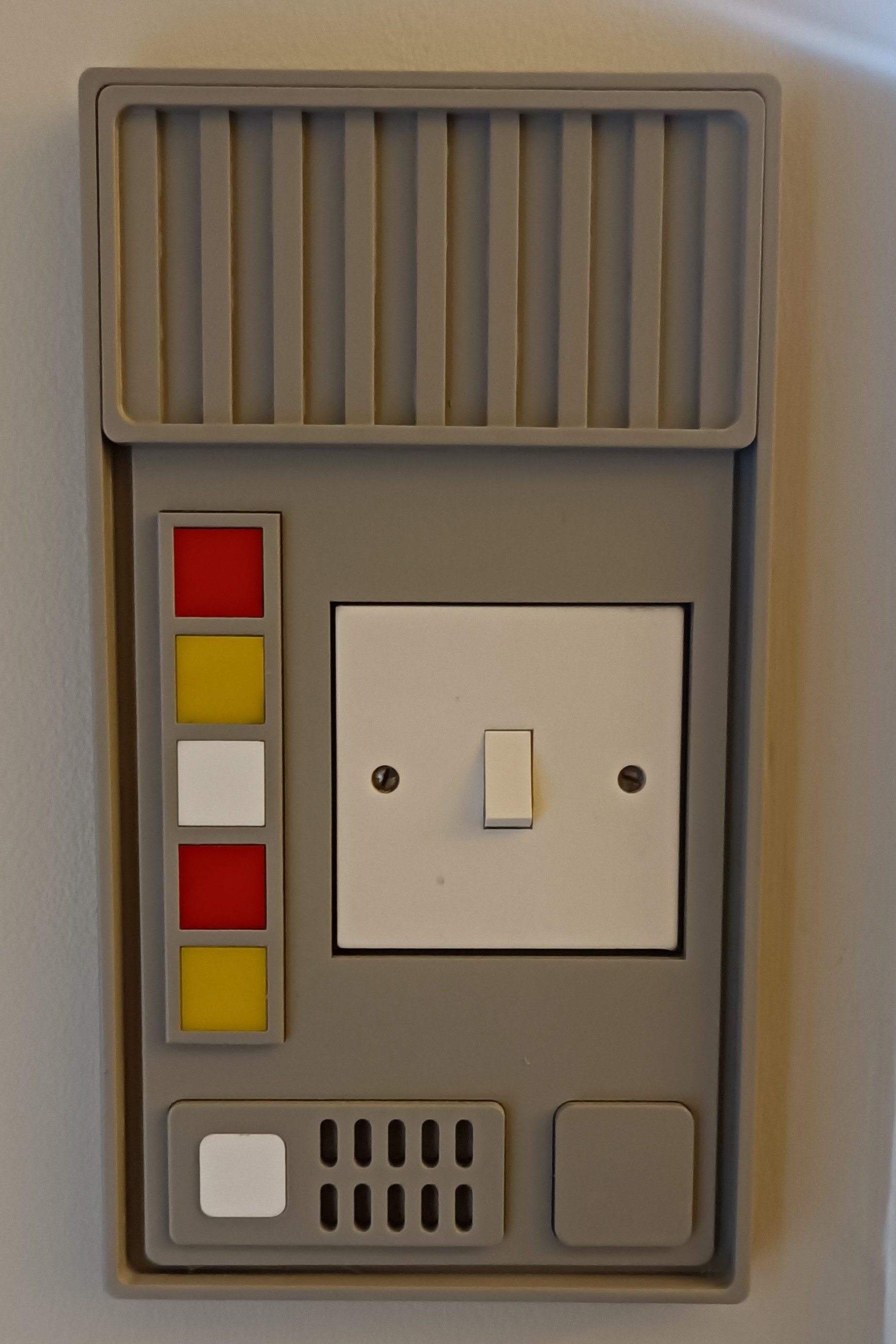 This Scifi inspired light switch surround control panel would be a perfect addition to any bedroom, games room, home cinema, man cave or she shed.